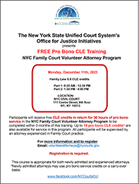 In recent years, the number of unrepresented litigants appearing in the New York State Courts has increased dramatically. In response, the court system established free Volunteer Attorney Programs to ensure that unrepresented litigants have access to competent legal advice to guide them as they represent themselves. There are also programs that provide limited scope representation in courtrooms.